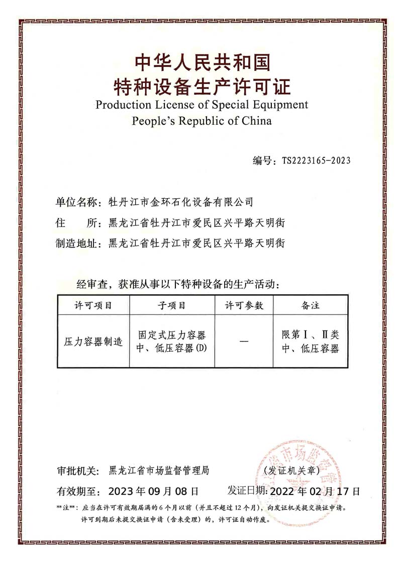 喜訊!熱烈祝賀我公司 “特種設(shè)備生產(chǎn)許可證”換證成功!